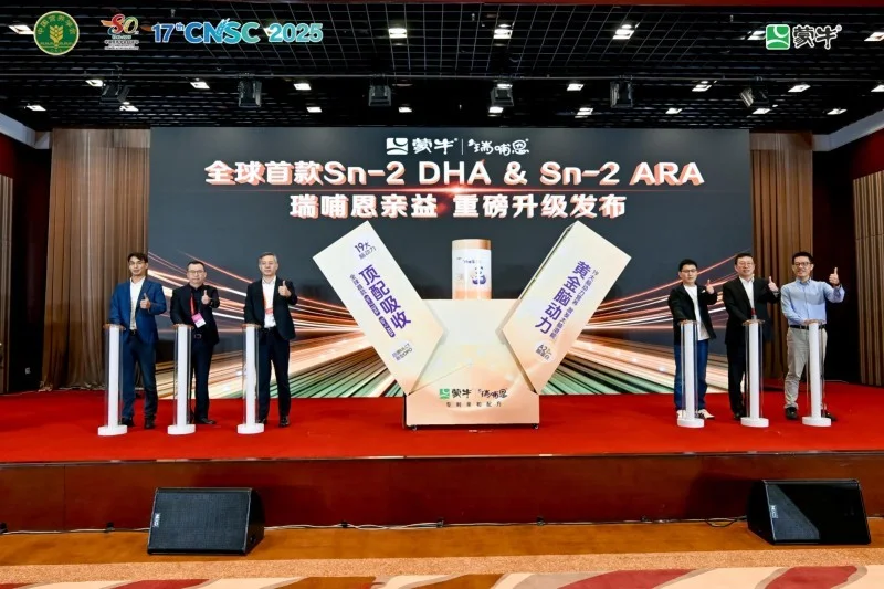 引领精准营养创新树立行业新标杆 当前,乳制品行业正在经历从基础营养到精准健康的战略转型,精准营养与功能型产品开发成为乳业升级的核心方向。凭借“敢创新、敢自研、敢实证”的科研理念,蒙牛推出一系列重磅创新成果。 在婴幼儿营养领域,蒙牛亮相了全球首款Sn-2 DHA & Sn-2 ARA婴配粉——瑞哺恩亲益3.0全新升级。江南大学教授王兴国在报告中指出,通过发酵条件优化和脂质重构精准地将DHA和ARA酯化在Sn-2位,更贴近乳脂结构。动物实验结果表明,摄入Sn-2位DHA的实验组,其大脑组织中DHA的积累水平显著提高,并在认知行为测试中表现出色。Sn-2位技术同样显著提升了ARA的吸收与利用效率。两者协同能为婴儿脑发育提供更高效的营养支持。